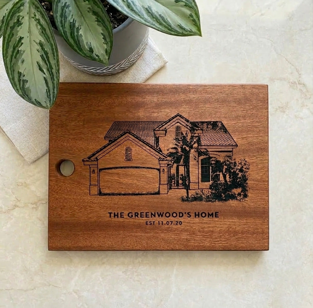Send us an image of a house or family to engrave on a cutting board! A heirloom that will be sure to last a lifetime.